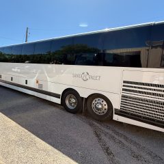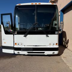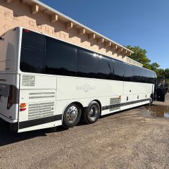 Very clean Prevost X3-45 motorcoach. 56 seats, recently redone in black synthetic leather by Sardo. upgraded flooring. only 260K miles. ADA bus with Ricon lift. (not currently installed, but could easily be installed upon request). 2 owners, both reputable carriers with full shops. Excellently maintained bus.