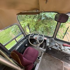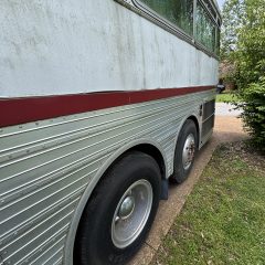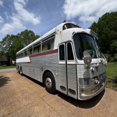 1967 Silver Eagle/8V71Detroit Diesel-4SPEED:Air/Hydraulic Clutch-226,000 Original Miles >Interior J-Shaped Couch Seating in rear of Bus. Driver’s side of Bus outfitted with Bathroom &Sink > Forward of Bathroom there’s a Wet Bar 2 Ice Bins with Drainage to holding tank >Coat closet and seats up to back of Driver seat step down area . Right side of Bus has the normal passenger seats that will Rotate and face each other. Bus is equipped with Gas Generator/Condition not known at this time. Bus length 40’ -Bus has cosmetic damage minor dents and some seal issues on front skylight windows and some body molding rust areas.